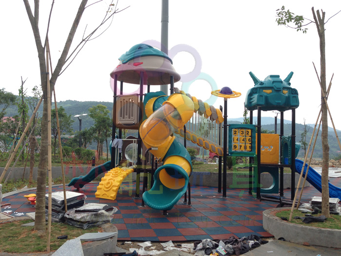 珠海德威房地产像胶地面户外大型滑梯安装案例